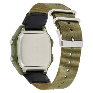 Корпус: Ударопрочный корпус часов сделан из высококачественного пластика, зелёного/чёрного цвета. Пластиковое стекло устойчивое к ударному воздействию. Габаритные размеры: 42 x 45 x 13 мм, вес 39 грамм. Водонепроницаемость: 100 м.