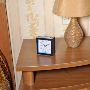 Размер: Размеры корпуса будильника (мм): 105(Ш)х105(В)х40(Г). Размер циферблата: 80х80 мм. Вес будильника (без батареек): 133 г.