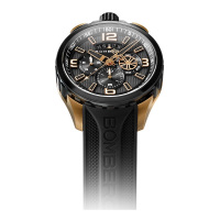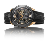 Корпус: Круглый корпус выполнен из нержавеющей стали. Стойкое к царапинам DLC покрытие черного цвета и PVD-покрытие золотом. Черный алюминиевый безель. Черный циферблат «clou de Paris» придает модели текстуру и элегантность. Уникальный дизай с завинчивающейся заводной головкой в положении «12 часов» и кнопками хронографа. Аппликация часовых индексов и стрелки с покрытием Super-Luminova®. Сапфировое стекло с антибликовым покрытием. Диаметр корпуса 45 мм, толщина - 13 мм. Водостойкость 50 метров.