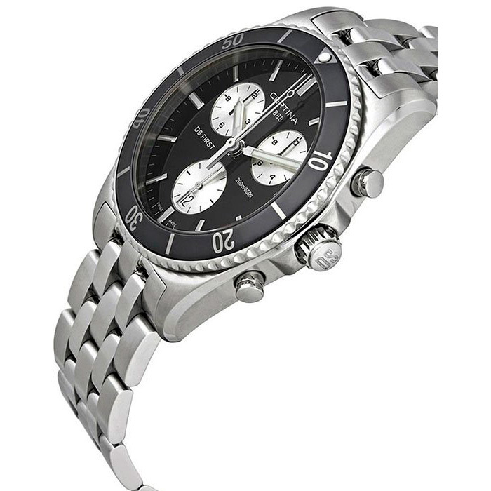 Корпус: Корпус из нержавеющей полированной/матовой стали. Безель с 60 - минутной шкалой на керамическом чёрном кольце. Чёрный/серебристый циферблат. Стрелки и часовые индексы серебристого цвета. Сапфировое стекло с антибликовым покрытием. Диаметр 41 мм. Водостойкость 200 м. Система DS.