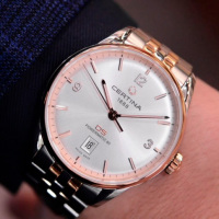 Корпус: Корпус из полированной/матовой нержавеющей стали. Металлик циферблат, золотистые стрелки и часовые индексы с люминесцентным покрытием. Сапфировое стекло с антибликовым покрытием. Диаметр 40 мм. Водостойкость 100 м. Система DS.