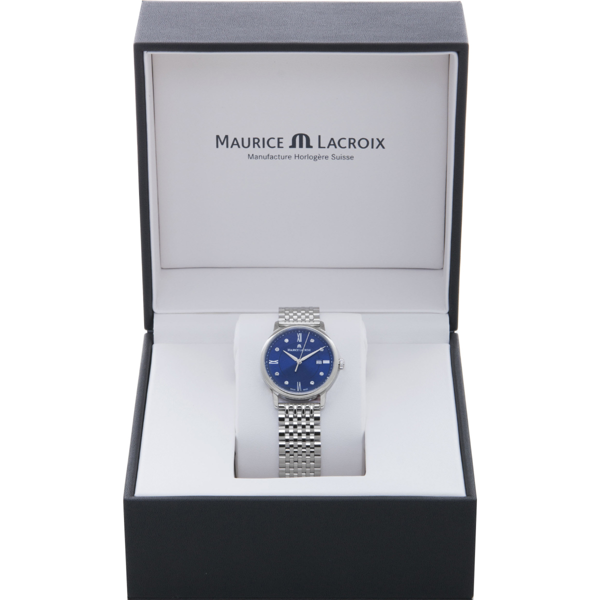 Корпус: Корпус из полированной стали. Синий циферблат украшен 8 бриллиантами. Сапфировое стекло с антибликовым покрытием. Диаметр 30 мм. Водозащита 50 м.