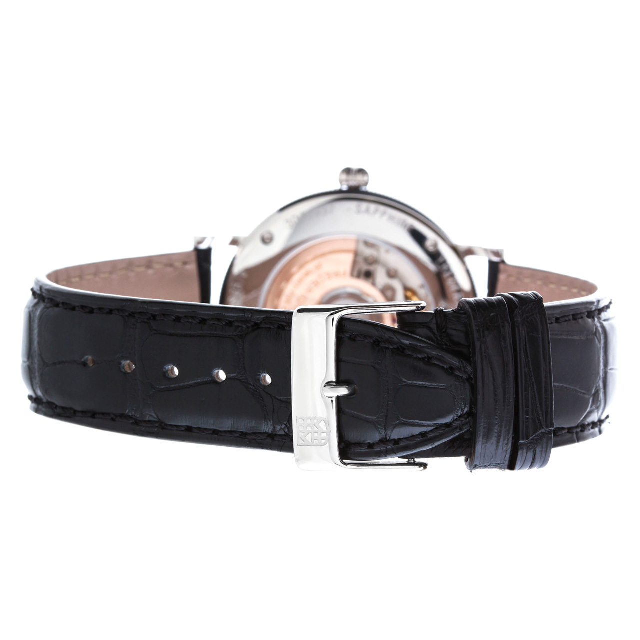 Корпус: Корпус из нержавеющей полированной/матовой стали. Циферблат серебристого цвета и искусно гильошированный узором. Стрелки часов и индексы чёрного цвета. Сапфировое стекло. Диаметр 39 мм. Водозащита 60 м.