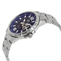 Корпус: Корпус этих часов выполнен из нержавеющей стали. Минеральное стекло. Синий циферблат. Стрелки серебристого цвета с люминесцентным покрытием. Водоустойчивость: 50 метров. Диаметр 43 мм.