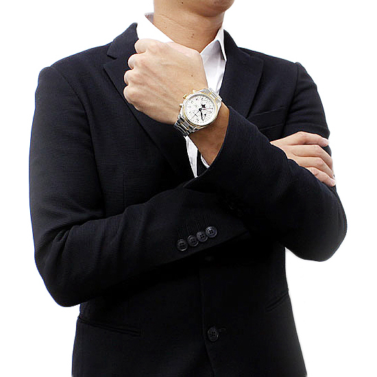Корпус: Нержавеющая сталь/розовое золото, сапфировое стекло с антибликовым покрытием. Диаметр 42 мм, водонепроницаемость 30 метров. Циферблат – белый.