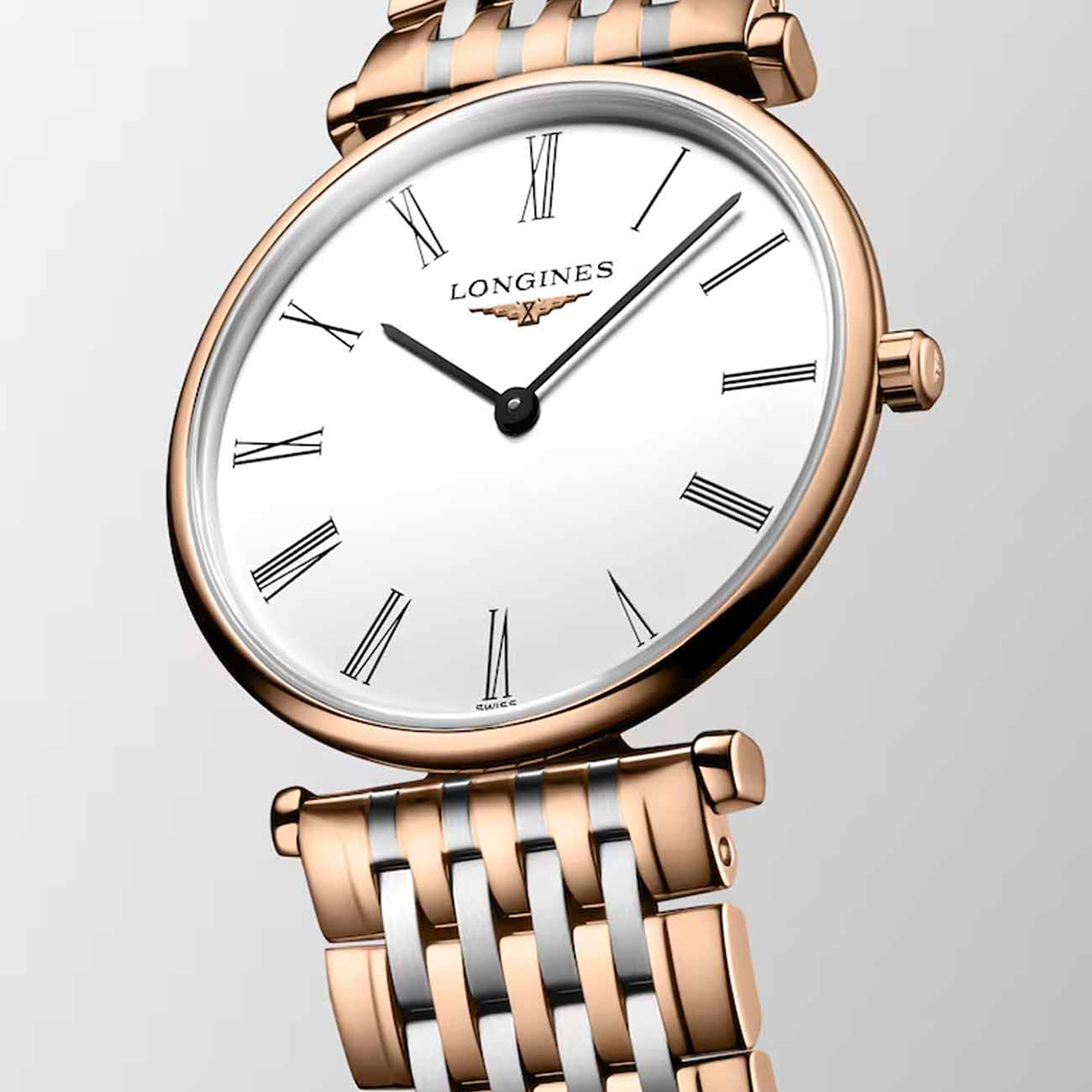 Корпус: Нержавеющая сталь + PVD-покрытие из розового золота, сапфировое стекло. Размер 29 мм, водонепроницаемость 30 метров. Циферблат – белый.