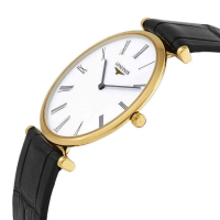 Корпус: Нержавеющая сталь марки 316L с PVD покрытием цвета желтого золота. Белый циферблат с чёрными римскими цифрами и стрелками. Сапфировое стекло с антибликовым покрытием. Водонепроницаемость 30 метров. Диаметр 33 мм.