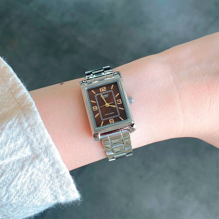 Корпус: Корпус изготовлен из гипоаллергенной латуни. Коричневый циферблат выполнен по технологии Sunray (солнечные лучи). Золотистые метки в виде штрихов и арабских цифр. Прочное минеральное стекло обеспечит защиту часов от повреждений. Размер 29x44x7,4 мм. Водонепроницаемость: 30 м.