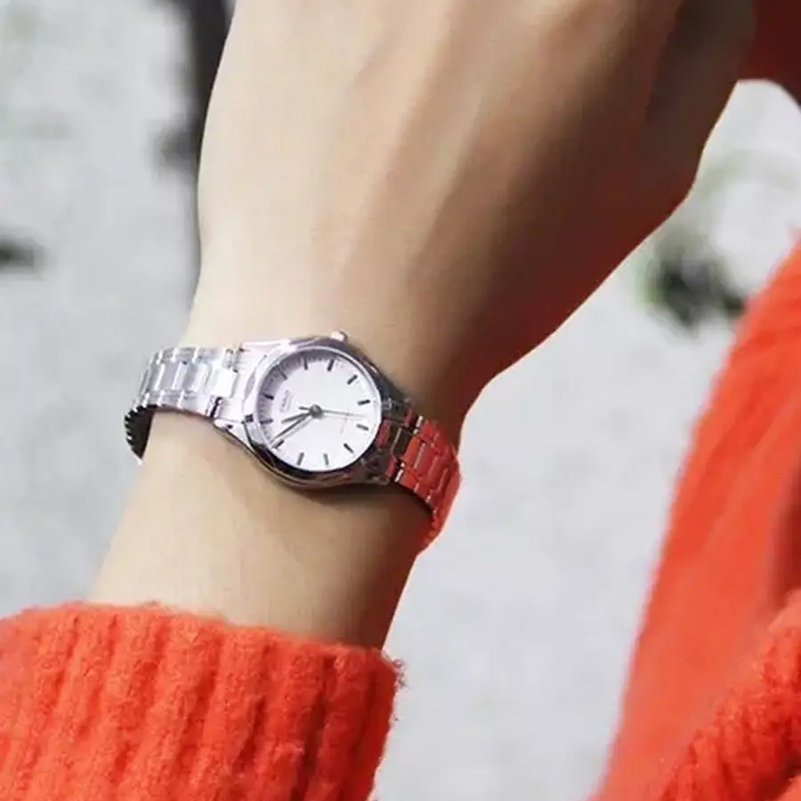 Корпус: Ударопрочный корпус часов сделан из прочной нержавеющей стали с высокими антикоррозийными свойствами. Белый циферблат с метками в виде штрихов. Прочное минеральное стекло устойчивое к мелким механическим повреждениям. Диаметр корпуса составляет 25 мм, толщина 7 мм. Водостойкость WR 30 (брызги).