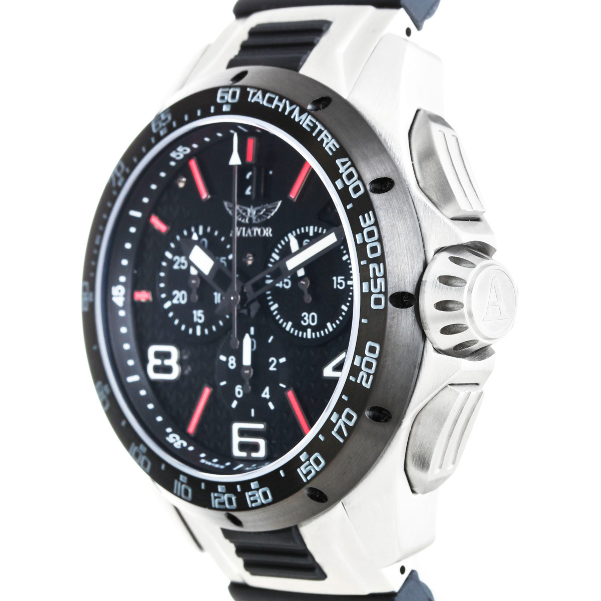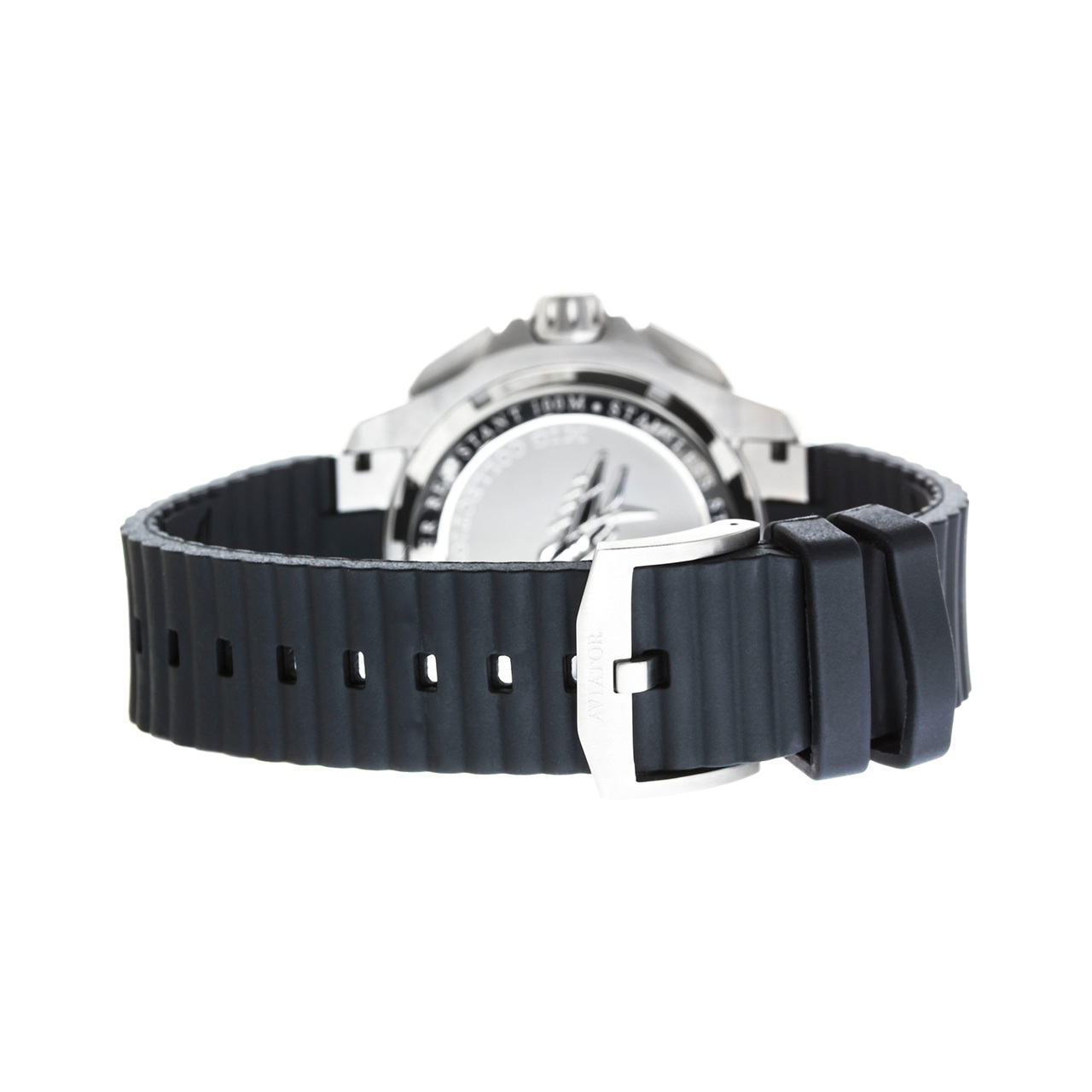 Ремешок: Ребристый ремешок напоминает трубку кислородной маски, используемой для высотных полётов. Прочный и эластичный ремешок черного цвета выполнен из полимерного материала. Литая стальная застежка с матовой шлифовкой и гравировкой Aviator.