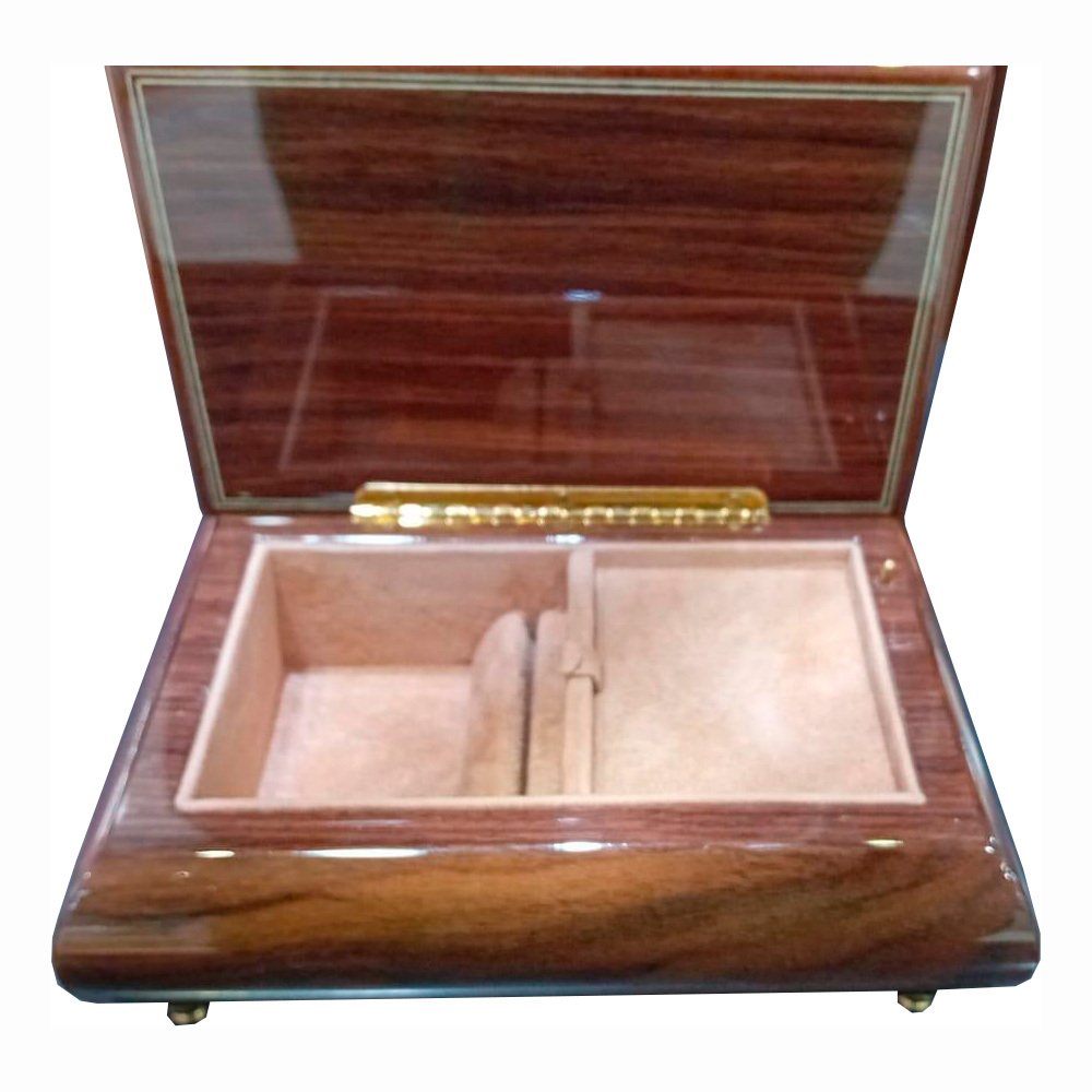 Материал: Эта роскошная музыкальная шкатулка украшена потрясающей инкрустацией на крышке, демонстрирующей яркий букет/музыкальные инструменты в золотых и мягких пастельных тонах на насыщенном коричневом фоне. Оформление, выполненное с использованием проверенной временем техники маркетри, отличается сложной детализацией, что делает каждую музыкальную шкатулку уникальным произведением искусства. Открыв шкатулку, вы увидите просторное внутреннее пространство, отделанное бархатом, с разделёнными отделениями, которые идеально подходят для хранения небольших сокровищ, таких как украшения или памятные вещи. Мягкая внутренняя отделка не только защищает ценности, но и дополняет полированное дерево внутри шкатулки. Благодаря откидной крышке музыкальная шкатулка обеспечивает лёгкий доступ, что делает её одновременно функциональной и эстетичной. Кроме того, шкатулка стоит на элегантных латунных ножках, что подчёркивает её изысканный дизайн. При открытии она воспроизводит успокаивающую мелодию, создавая атмосферу спокойствия и ностальгии. Эта итальянская музыкальная шкатулка ручной работы идеально подойдёт коллекционерам, любителям музыки или тем, кто ценит изысканное ремесленное мастерство.