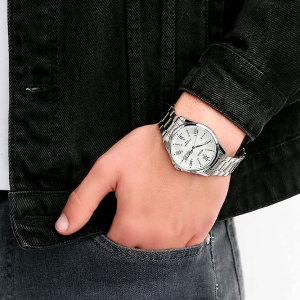 Функции: Индикация часов, минут и секунд при помощи центральных стрелок. На циферблате присутствует индикация дня недели и текущей даты.