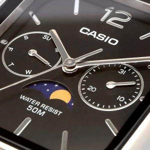 Функции: Индикация часов, минут и секунд при помощи центральных стрелок. Стрелочный указатель дня недели и даты. Отображение фаз Луны.