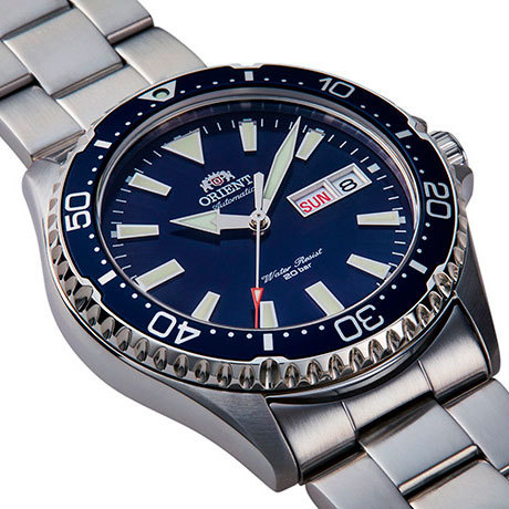 Корпус: Нержавеющая сталь. Сапфировое стекло. Синий циферблат, часовые стрелки и метки с люминесцентным покрытием. Диаметр корпуса 42 мм. Заводная головка с защитой. Водозащита 200 метров.