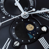 Корпус: Нержавеющая сталь. Чёрный циферблат с римскими цифрами и открытым балансом хода. Прочное сапфировое стекло обеспечит защиту часов от повреждений. Прозрачная завинчивающаяся задняя крышка. Диаметр: 42,5 мм. Водозащита: 50 метров.
