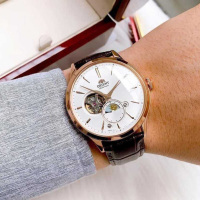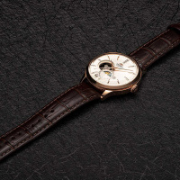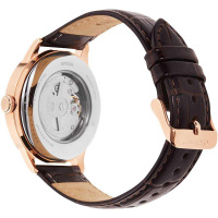Корпус: Корпус из высококачественного стального сплава с высокими антикоррозийными свойствами и IP покрытием цвета розового золота. Циферблат белого цвета с открытым балансом хода. Стрелки и метками в виде штрихов золотистого цвета. Сапфировое стекло устойчивое к царапинам. Завинчивающаяся прозрачная задняя крышка. Диаметр корпуса: 41 мм. Толщина: 12 мм. Водонепроницаемость: 30 м.