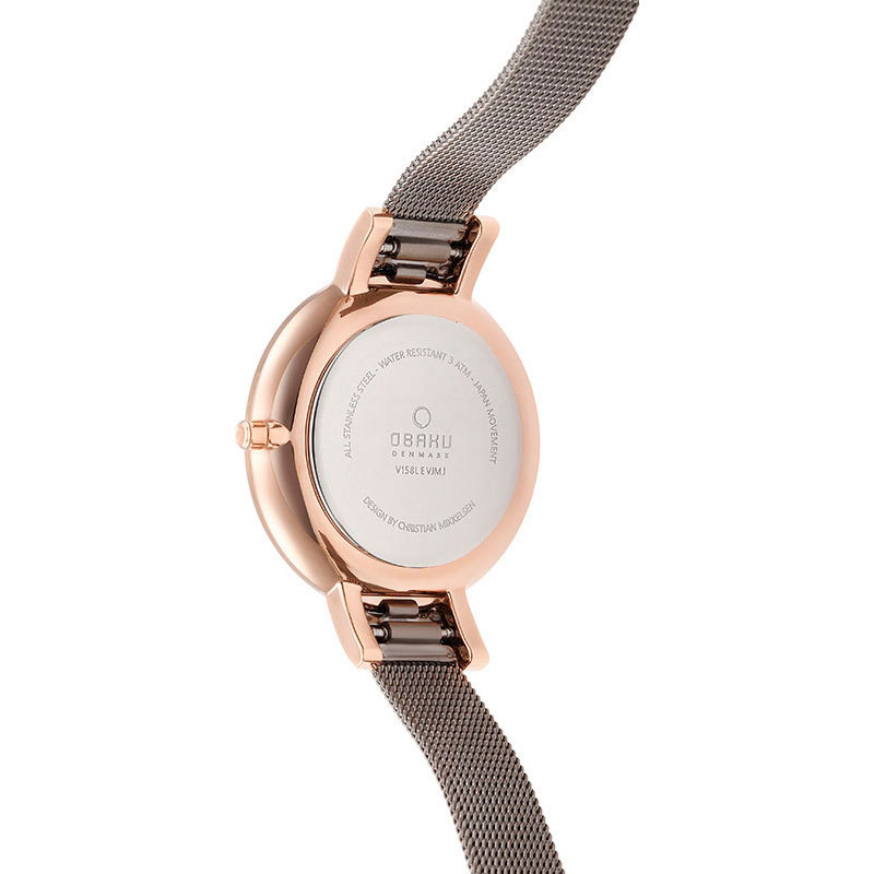 Корпус: Нержавеющая сталь 316L с розовым IP покрытием. Корпус украшен кристаллами Swarovski. Шоколадный циферблат с позолоченными стрелками. Минеральное стекло повышенной прочности. Водозащита: 30 м. Диаметр: 34 мм.