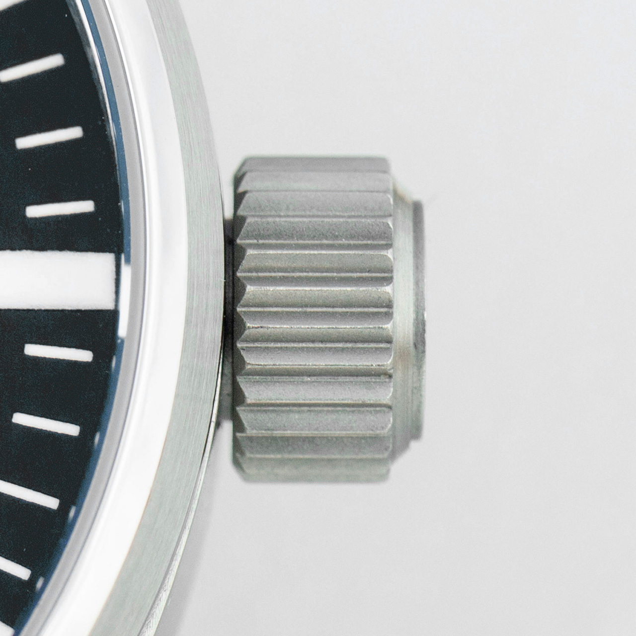 Корпус: Нержавеющая сталь марки 316L. Чёрный циферблат. Стрелки и часовые индексы серебристого цвета покрыты люминесцентным составом SuperLuminova. Сапфировое стекло с антибликовым покрытием. Водонепроницаемость 100 метров. Диаметр 42 мм.