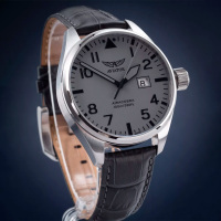 Функции: Центральные часовая, минутная и секундная стрелки, увеличенная индикация даты в апертуре на отметке “3 часа” для которой используются два диска с цифрами.