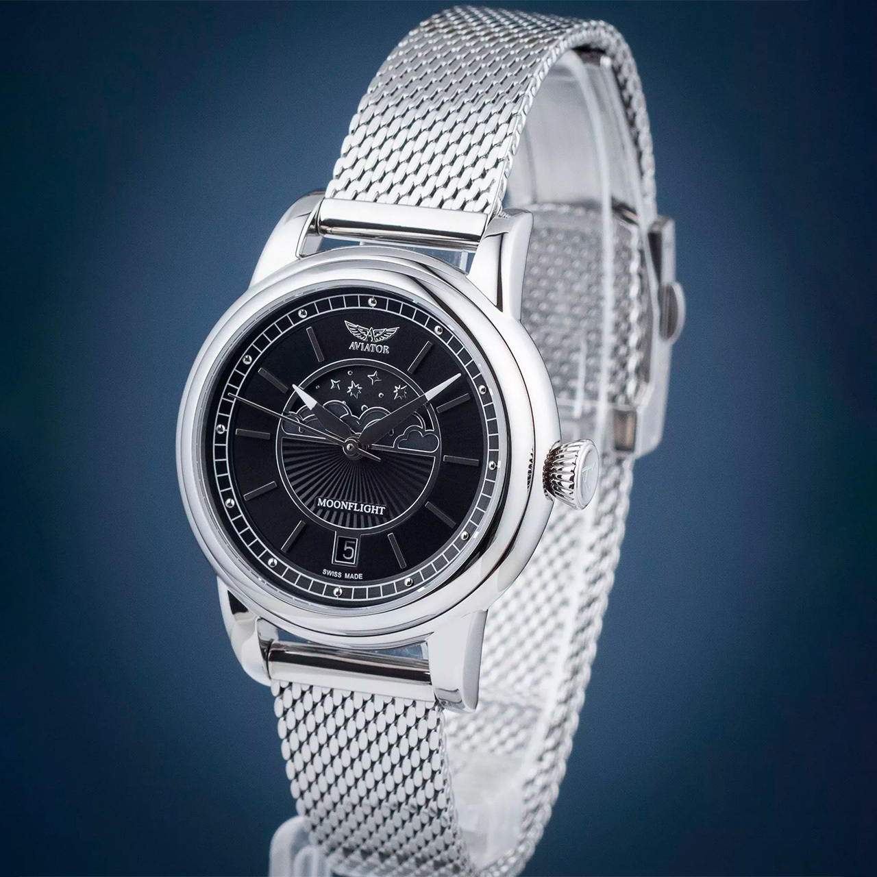 Корпус: Корпус круглой формы выполнен из нержавеющей стали марки 316L. Циферблат чёрного цвета с различными видами финишной обработки. В центральной части стилизация под гильоширование, окруженная шлифовкой в стиле «солнечные лучи». Аппликация часовых индексов и меток-точек. Облака рядом с индикатором фаз Луны с инкрустацией перламутром. Сапфировое стекло с двусторонним антибликовым покрытием имеет повышенную устойчивость к возникновению царапин. Задняя крышка с гравированным изображением авиалайнера Douglas DC-3 имеет винтовое соединение с корпусом. Диаметр: 36 мм. Водостойкость 100 метров (10 АТМ).