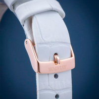 Ремешок: Белый ремешок из телячьей кожи с тиснением под аллигатора, классическая застежка – пряжка из нержавеющей стали.