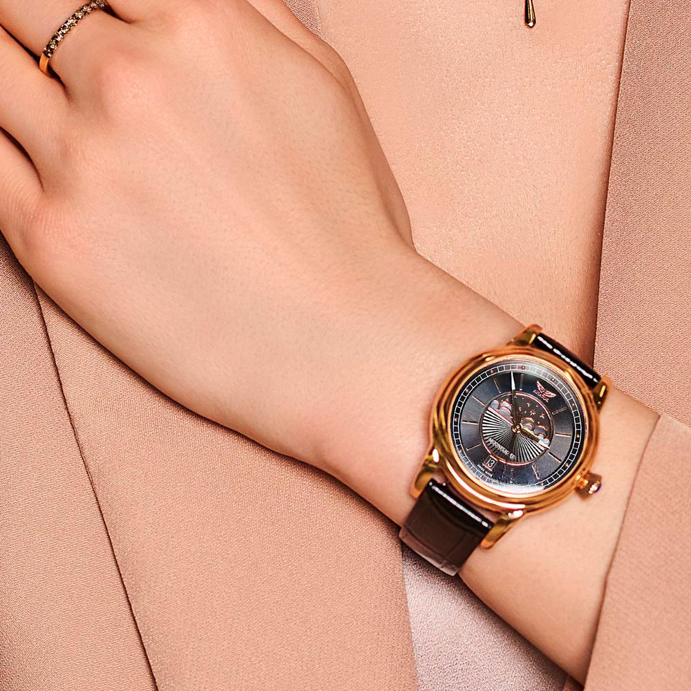 Корпус: Нержавеющая сталь марки 316L с розовым PVD покрытием. Чёрный циферблат. Стрелки и часовые индексы золотистого цвета покрыты люминесцентным составом SuperLuminova. Облака на циферблате украшены перламутровыми вставками. Задняя крышка с гравированным изображением авиалайнера Douglas DC-3 имеет винтовое соединение с корпусом. Рифлёная заводная головка. Сапфировое стекло с антибликовым покрытием. Водонепроницаемость 100 метров. Диаметр 36 мм.
