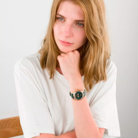 Ремешок: Зелёный ремешок из телячьей кожи с тиснением под аллигатора, классическая застежка.