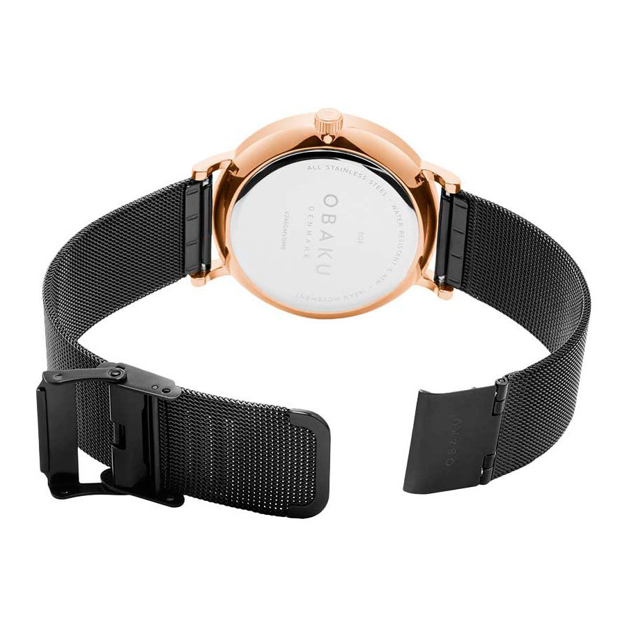 Ремешок: Стальной браслет с чёрным IP покрытием выполнен в технике миланского плетения, раскладывающаяся застежка.
