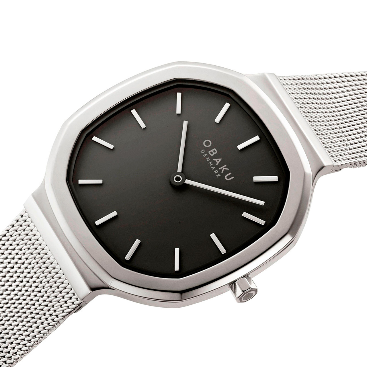 Корпус: Восьмиугольный корпус выполнен из нержавеющей стали. Черный циферблат. Метки в виде штрихов. Прямоугольные стрелки. Устойчивое к возникновению царапин сапфировое стекло. Диаметр корпуса составляет 32 мм, толщина 4,8 мм. Водостойкость WR 30 (брызги).