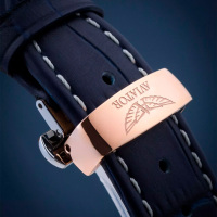 Ремешок: Синий ремешок из телячьей кожи с тиснением под аллигатора. Ремешок снабжен удобной раскладной застежкой, которая закрывается одним щелчком.