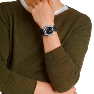 Корпус: Корпус выполнен из полимерного материала чёрного цвета, который является идеальным компаньоном каждого дня, прочный и лёгкий. ЖК дисплей чёрного цвета. Акриловое стекло. Стальная задняя крышка крепится на 4-х винтах. Циферблат подсвечивается светодиодом. Настраиваемое послесвечение 1,5 или 3сек. Цвет подсветки: оранжевый. Габариты 44,5мм x 47,2мм x 13,4мм, вес 43г. Водонепроницаемость 100 м.