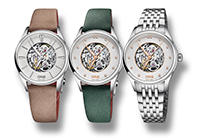 Новая женская коллекция Classico Jade диаметром 37мм – это пять стильных моделей, декорированные бриллиантами. Волнообразная россыпь камней на перламутровом циферблате украшает часы в синей, серой или вишневой гамме.