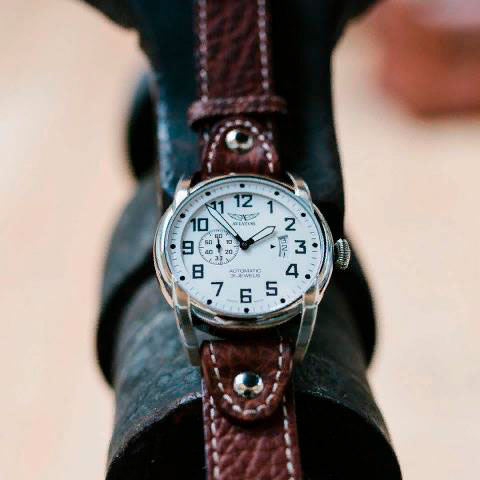 Отличительный своим присутствием большой карманный корпус AVIATOR Bristol Scout Limited Edition с поразительным достоинством перекликается с его винтажным прошлым. Его большой корпус и отверстие для циферблата напоминают стиль первых карманных часов с ушками, которые позже были приварены к ремешку. Заимствуя этот оригинальный дизайнерский нюанс, нетипичные ушки, приваренные к корпусу, не требуют пружинных стержней и легко крепятся к ремешку из натуральной кожи. Уникальный внешний вид этой модели также дополняет крупногабаритная корона с глубоким рисунком, который обеспечивает идеальное сцепление даже в самых толстых перчатках пилота.