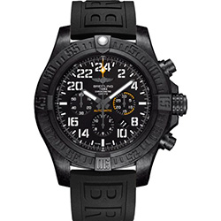 3. Breitling Avenger Hurricane XB1210E4/BE89-154S: матовый чёрный корпус из инновационного полимера «Breitlight®»; чёрный циферблат; ремешок из чёрного каучука с объёмной надписью «Breitling», с застёжкой-пряжкой. |
