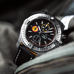 55-летний юбилей пилотажной группы ВВС Швейцарии Patrouille Suisse, известной на весь мир непревзойденным мастерством своих летчиков, вдохновил компанию Breitling на создание новой модели часов – Avenger Swiss Air Force Team Limited Edition. Серия ограничена тиражом 550 экземпляров.
