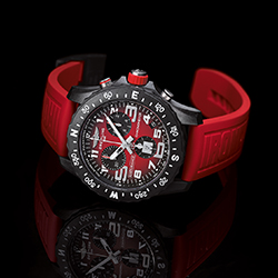 - Красный, с черным внутренним безелем со шкалой пульсометра, счетчиками хронографа черного цвета и логотипом IRONMAN® у отметки «6 часов».