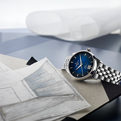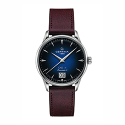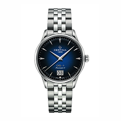 В часах DS-1 Big Date от Certina с легкостью сочетаются такие, казалось бы, несовместимые понятия как элегантность подлинной классики и изысканная оригинальность. Градация цвета придает характер и визуальную глубину выпуклым циферблатам с гильоше «Солнечные лучи». Темно-синий оттенок центральной части циферблата ближе к краям перетекает в черный, а серебристо-серый переходит в антрацитовый. Клиновидные часовые отметки с обработанными краями, удлиненные стрелки формы Dauphine и большое окошко даты на отметке «6 часов» обеспечивают абсолютную считываемость показаний. Сапфировое стекло задней крышки корпуса из нержавеющей стали диаметром 41 мм позволяет рассмотреть внутренние детали. Модели доступны с браслетом из нержавеющей стали или ремешком из телячьей кожи. Последний можно легко заменить благодаря специальным подпружиненным стержням.