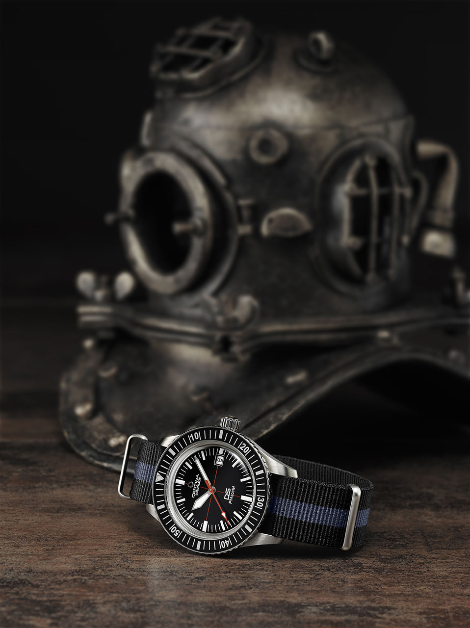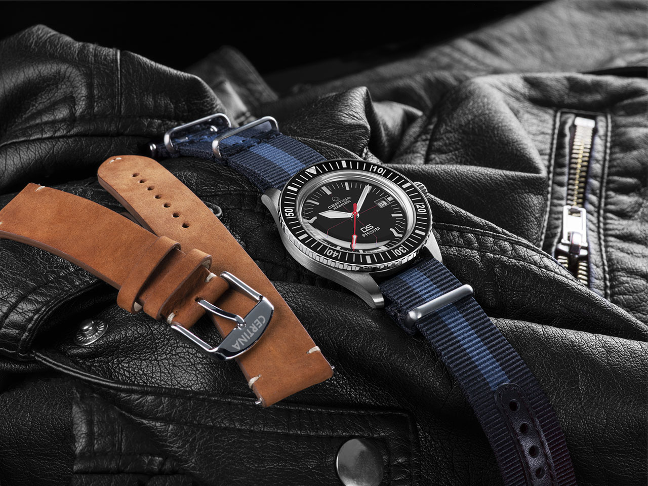 Компания Certina представила современную версию классических часов. Корпус из нержавеющей стали диаметром 42,8 мм оснащен черным однонаправленным градуированным безелем. Он обрамляет черный циферблат, создающий гармоничный цветовой контраст (его можно увидеть даже в темноте) со стрелками и отметками, оснащенными покрытием Super-LumiNova. Если перевернуть часы, можно увидеть изображение черепахи – символ марки Certina. В качестве альтернативы производитель предлагает два крепления. Гибкий черный или серый тканевый ремешок Nato с пряжкой и коричневый ремешок из телячьей кожи для официального дресс-кода придает дизайну завершенность.