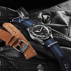 - Два разных ремешка (тканевый ремешок Nato и ремешок из телячьей кожи).