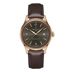 - C038.407.36.087.00 Коричневый циферблат, корпус из нержавеющей стали с PVD-покрытием цвета розового золота и темно-коричневый кожаный ремешок.
