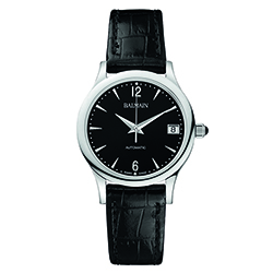 4. Classic R Gent Automatic B3981.32.64: стальной корпус и чёрный кожаный ремешок; чёрный циферблат, украшенный гильоше в стиле «солнечные лучи» (Rayonne) с арабскими цифрами 6, 12 и десятью условными индексами. | |