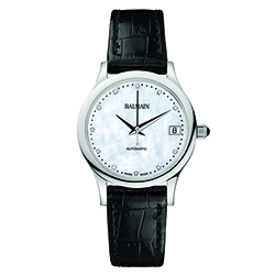 7. Classic R Lady Automatic B3991.32.86: стальной корпус и чёрный кожаный ремешок; белый перламутровый циферблат с одиннадцатью бриллиантами «Wesselton» в виде условных индексов. | |