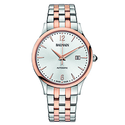 5. Classic R Gent Automatic B3988.33.24: стальной корпус с PVD-покрытием розовым золотом, стальной браслет с PVD-покрытием розовым золотом чётных звеньев; серебристый циферблат, украшенный гильоше в стиле «солнечные лучи» (Rayonne) с арабскими цифрами 6, 12 и десятью условными индексами, имеющими PVD-покрытие розовым золотом. | |