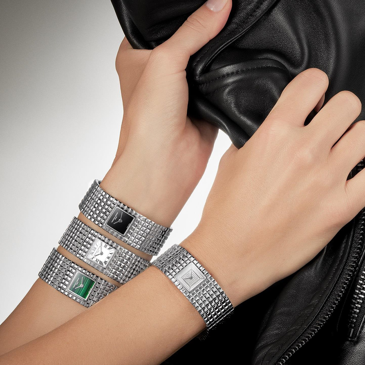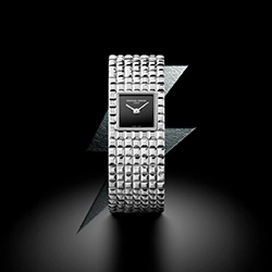 Cl Classics Manchette — это решительный аксессуар: при взгляде первым бросается скульптурный браслет с орнаментом Clou de Paris, который играет бликами и превращает часы в украшение. Мини-циферблат выдержан в строгой минималистичной манере — только часы и минуты — чтобы ничто не отвлекало от фактуры и формы браслета.