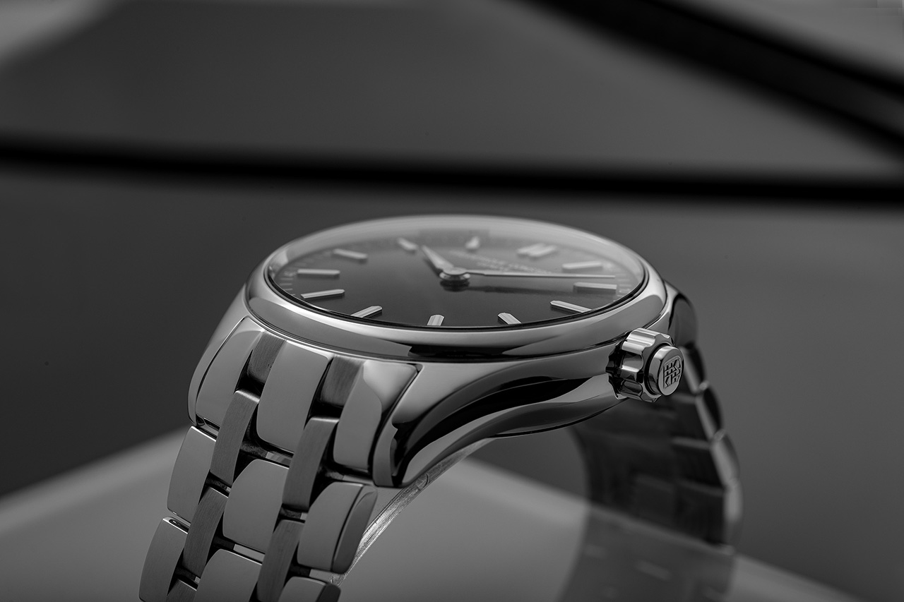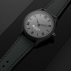 Вторая монохромная модель окрашена в серый цвет. Эта сдержанная и элегантная версия в современном стиле более чувствительна к свету, чем часы черного цвета. Отличительной особенностью модели является увлекательная игра отражений, теней и контрастов. Накладные индексы хорошо выделяются на фоне циферблата, а полированные стрелки парят над циферблатом с узором в виде солнечных лучей в изысканном хроматическом танце.