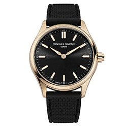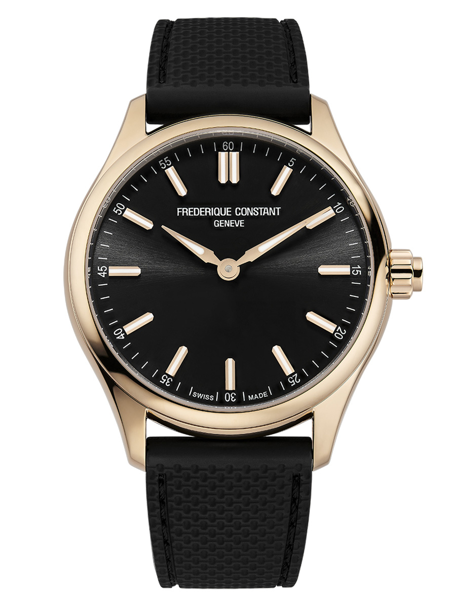 Чтобы удовлетворить потребности коллекционеров и ценителей часов из золота и стали, Frederique Constant предлагает две новые модели Smartwatch Gents Vitality. Первая имеет изысканный корпус с покрытием из розового золота. Он дополнен черным циферблатом, гармонично объединившим традиции и современность. Люминесцентные стрелки и граненые накладные индексы также имеют покрытие из розового золота. Текстурированный каучуковый ремешок, оснащающий все новые модели, подчеркивает особую эстетику этих часов в стиле «спорт-шик». Все, кроме одной.