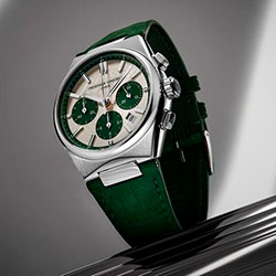 - Ограниченная стальная версия (1888 экземпляров) – корпус из нержавеющей стали и оригинальное сочетание опалового циферблата с зелеными счетчиками, придающее модели динамичный спортивный характер.
