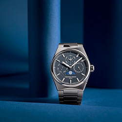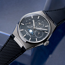 Флагманская модель коллекции Highlife Perpetual Calendar Manufacture впервые представлена с циферблатом глубокого дымчато-синего цвета, который является самым модным оттенком в современном часовом искусстве и олицетворяет хроматическую гармонию между морем, небом и космосом.