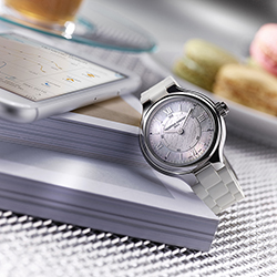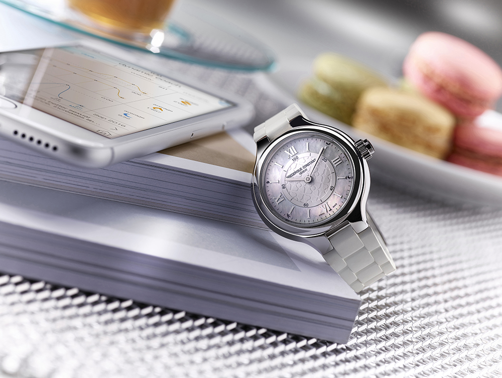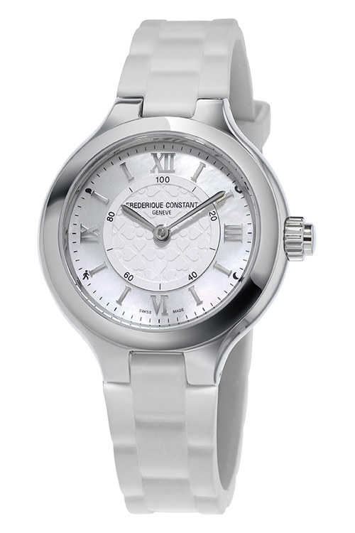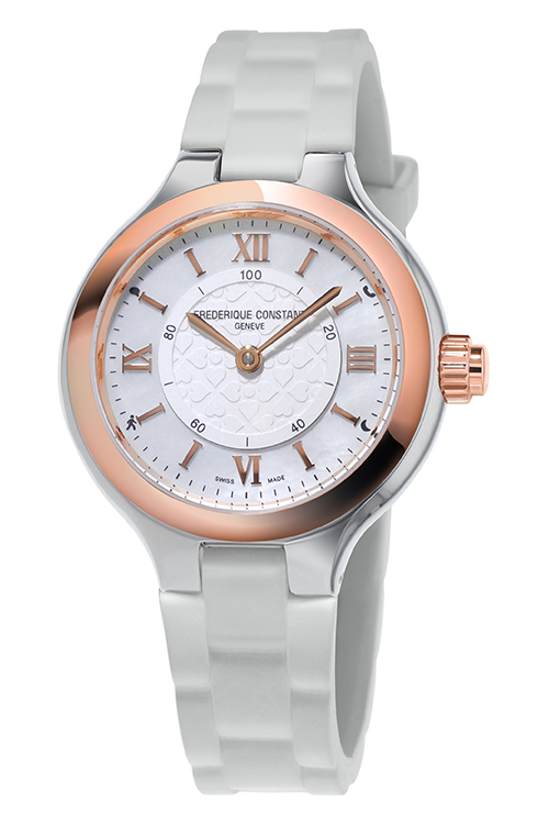 Часы отличаются элегантностью и женственностью, оснащены подключаемым модулем функций. Три новые женские модели часов Frederique Constant имеют изящно украшенные циферблаты с гильошированной центральной частью, перламутровой внешней шкалой и накладными римскими цифрами. Часы с корпусом диаметром 34 мм изготовлены в двух вариантах: с полностью стальным безелем и стальным с покрытием из розового золота.