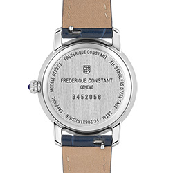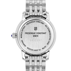 На волне успеха своих моделей с перламутровым циферблатом и бриллиантовыми индексами Frédérique Constant представляет две новые версии, которые знаменуют собой возвращение Мануфактуры к классике часового искусства, утонченной и неподвластной времени. Каждая из новинок привлекает внимание опаловым циферблатом с накладными часовыми индексами в форме палочек, окрашенными в перламутрово-черный цвет. Компоновка циферблата отвечает канонам Высокого часового искусства Женевы, где находится собственная мануфактура Frédérique Constant.